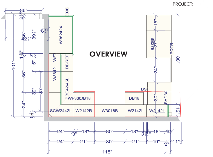 Detailed drawings of floor plan and elevations with measurements illustrating layout with detailed cabinet plans, appliances, electical, lighting and plumbing plans, plumbing fixtures, and budget
