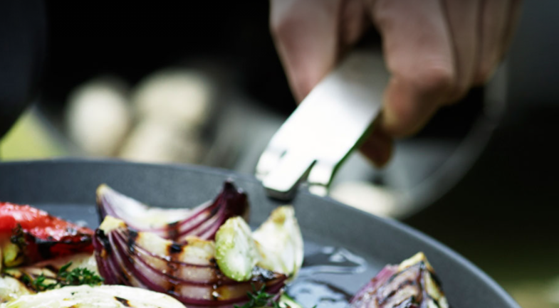 The steel handle can be used for the frying pan, the grill platter, and the grill grate which is available for the Morso Grill Forno.