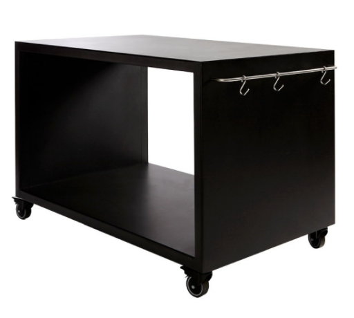 The large space below the table lets you store firewood, herbs, and whatever else a grillmaster and pizza baker might need to have close to hand. The outdoor table can easily be pushed around using the stainless handle, and the three hooks can be used to hang tools and dishcloths.